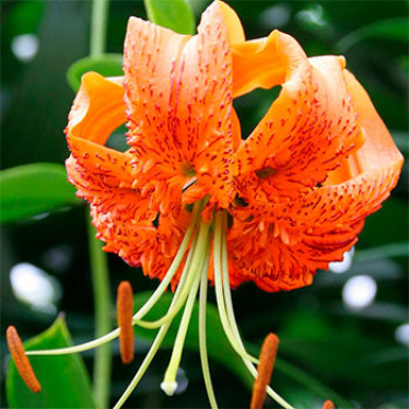 - Л. свисающая. Характерная черта – формирование до 50 цветков чалмовидной формы, напоминающее фонари. Такие видовые лилии в саду становятся ярким акцентом, привлекая внимание всеми оттенками фиолетового, розового, красного, оранжевого.