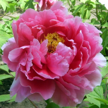 Куст древовидного пиона может достигать 1,5-2 метров высоту. Побеги прямостоячие, бледно-коричневого цвета. Они постоянно разрастаются, с годами приобретая полушаровидную форму. На концах стеблей появляются крупные цветки (15-20 см). Они могут быть простыми, полумахровыми или махровыми, и в зависимости от сорта пионы отличаются разнообразием оттенков. Встречаются одноцветные и двухцветные сорта древовидных пионов: