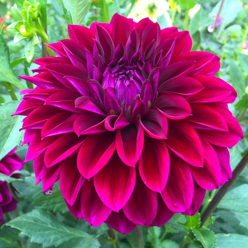 Жоржина Diva повністю виправдовує свою назву, займаючи центральне місце в будь-якій садовій композиції. Її квіти вражають не лише розміром, а й глибиною кольору – це шляхетний, оксамитовий відтінок темної мадженти з легким фіолетовим відливом у центрі. Завдяки ідеальній симетрії пелюсток та потужним стеблам, цей сорт вважається одним із найкращих для професійного зрізу та створення високих акцентних бордюрів. Diva розпускається поступово, зберігаючи декоративність куща до глибокої осені, і виглядає по-справжньому розкішно як у групових посадках, так і в сольних партіях.