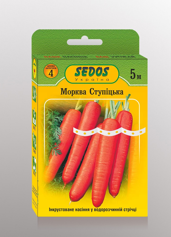 Морква сорт насіння Ступіцька на стрічці – опис і характеристики:
